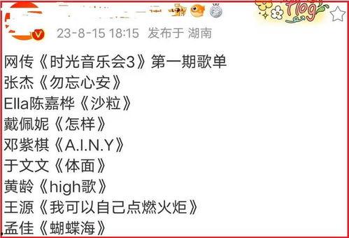 首先,让我们来看看这个歌单都有哪些歌曲。据可靠消息透露,这次时光音乐会歌单可谓是经典与流行的完美融合。不仅有那些耳熟能详的经典老歌,还有不少当红歌手的新歌,让人耳目一新。